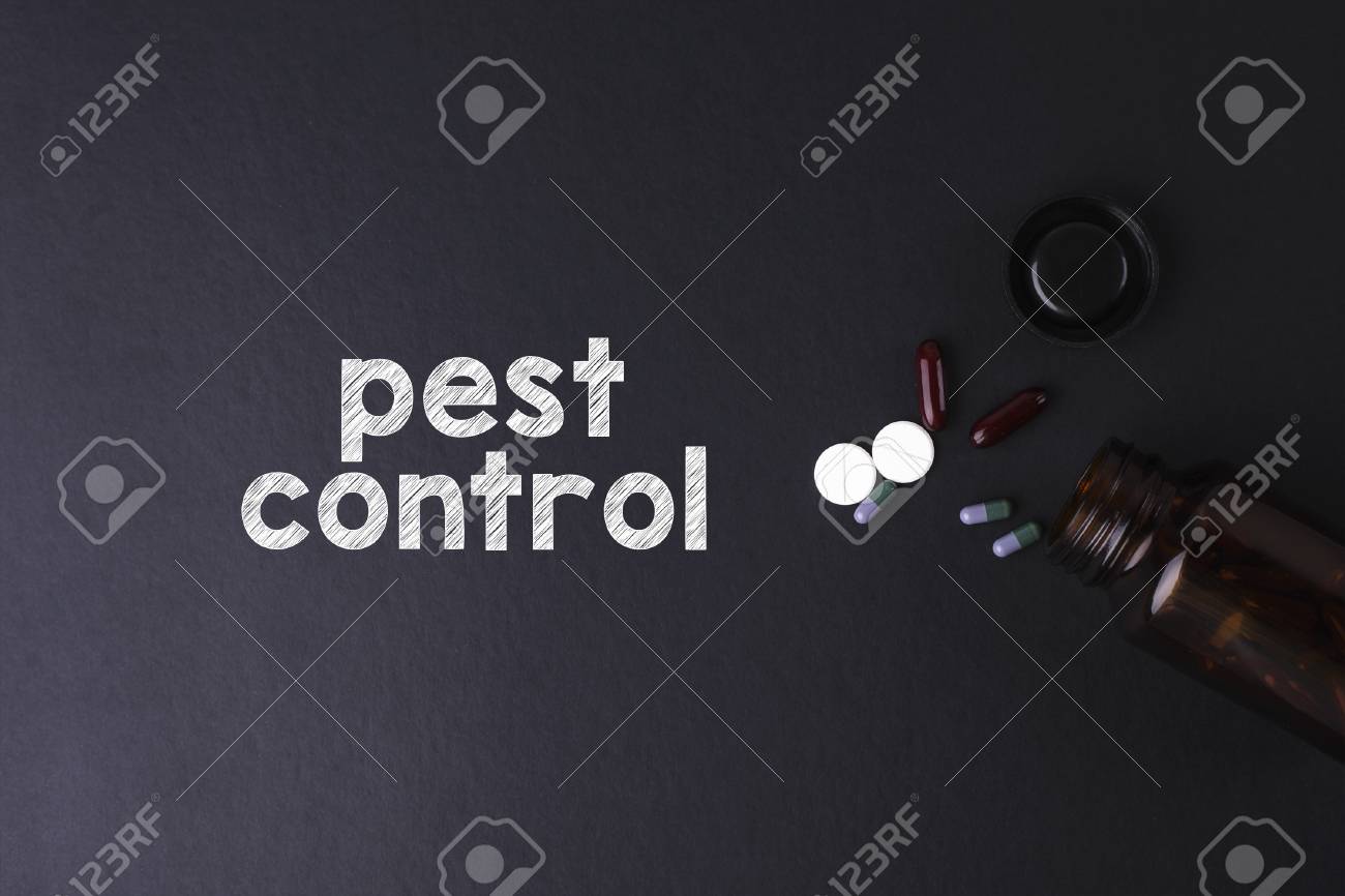 Pest Control Word With Medicine And Bottle Health Concept