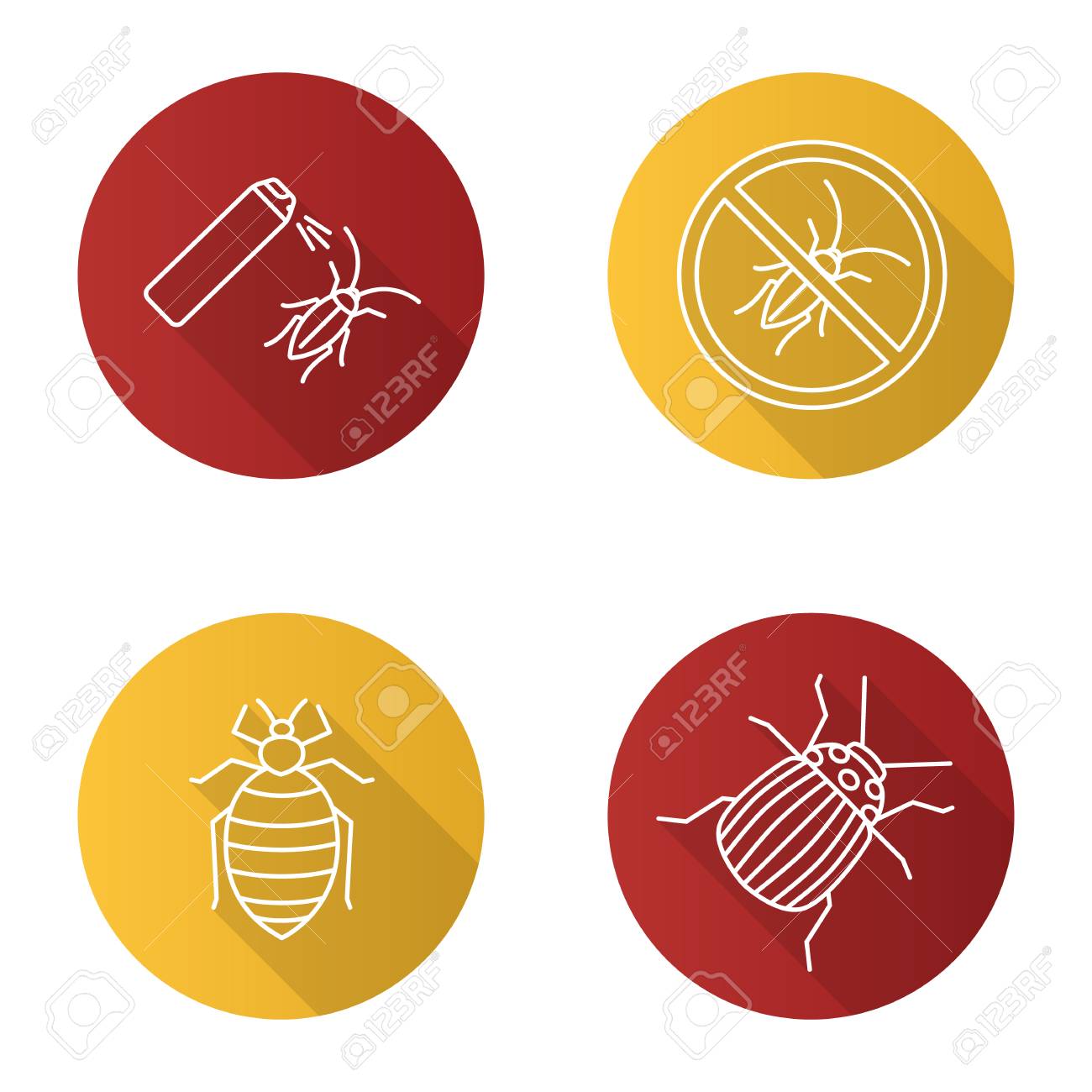 Pest Control Flat Linear Long Shadow Icons Set Colorado Insect