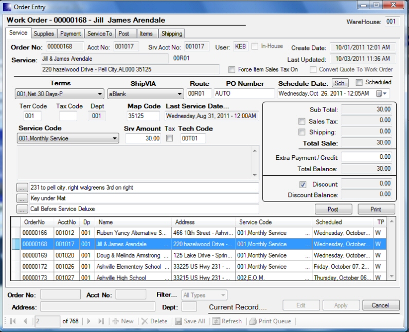 Pest Control Software Screen Shot Order Entry